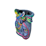 • Design: It features a multicolor, hand-painted finish with bright accents like pink, red, golden, blue, and green on a dark grey or black base.