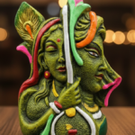 - Design:Â It features a colorful design of the intertwined faces of Radha and Krishna, symbolizing their eternal love and divine union.