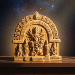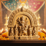 • It features Goddess Durga slaying the demon Mahishasura, accompanied by her children: Lakshmi, Saraswati, Ganesha, and Kartikeya.