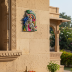 - Deities: The sculpture depicts Lord Krishna playing his divine flute alongside his consort, Radha.
